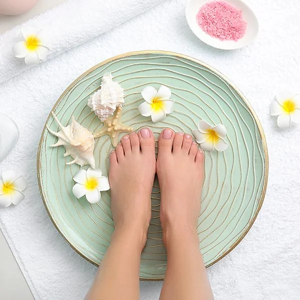 Your feet are soaked, and your toenails and cuticles are shaped, groomed, and finished with your choice of polish.